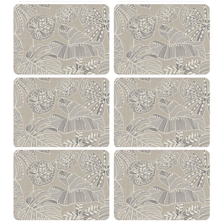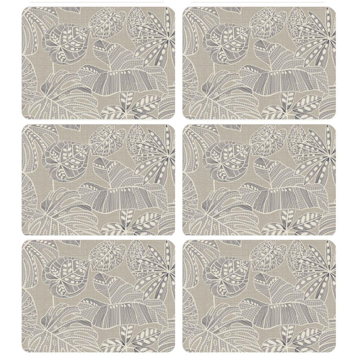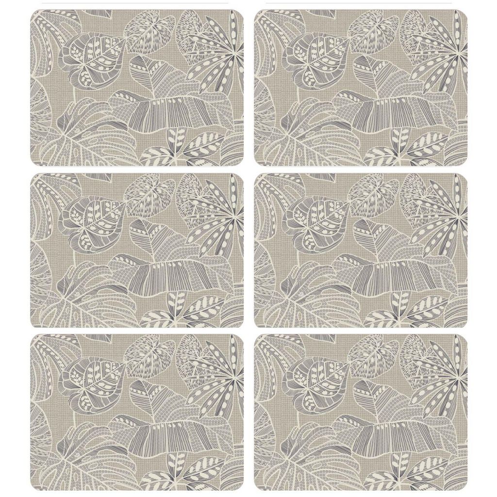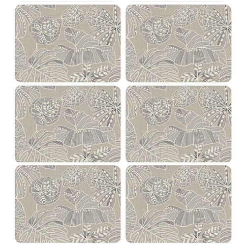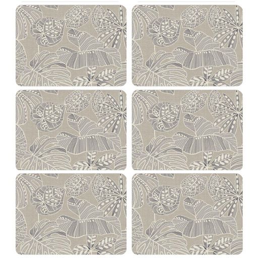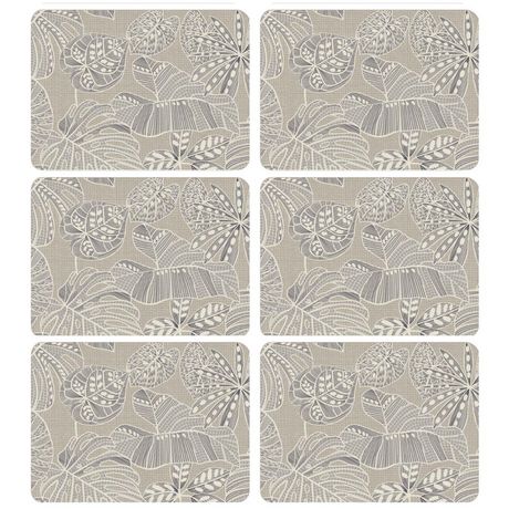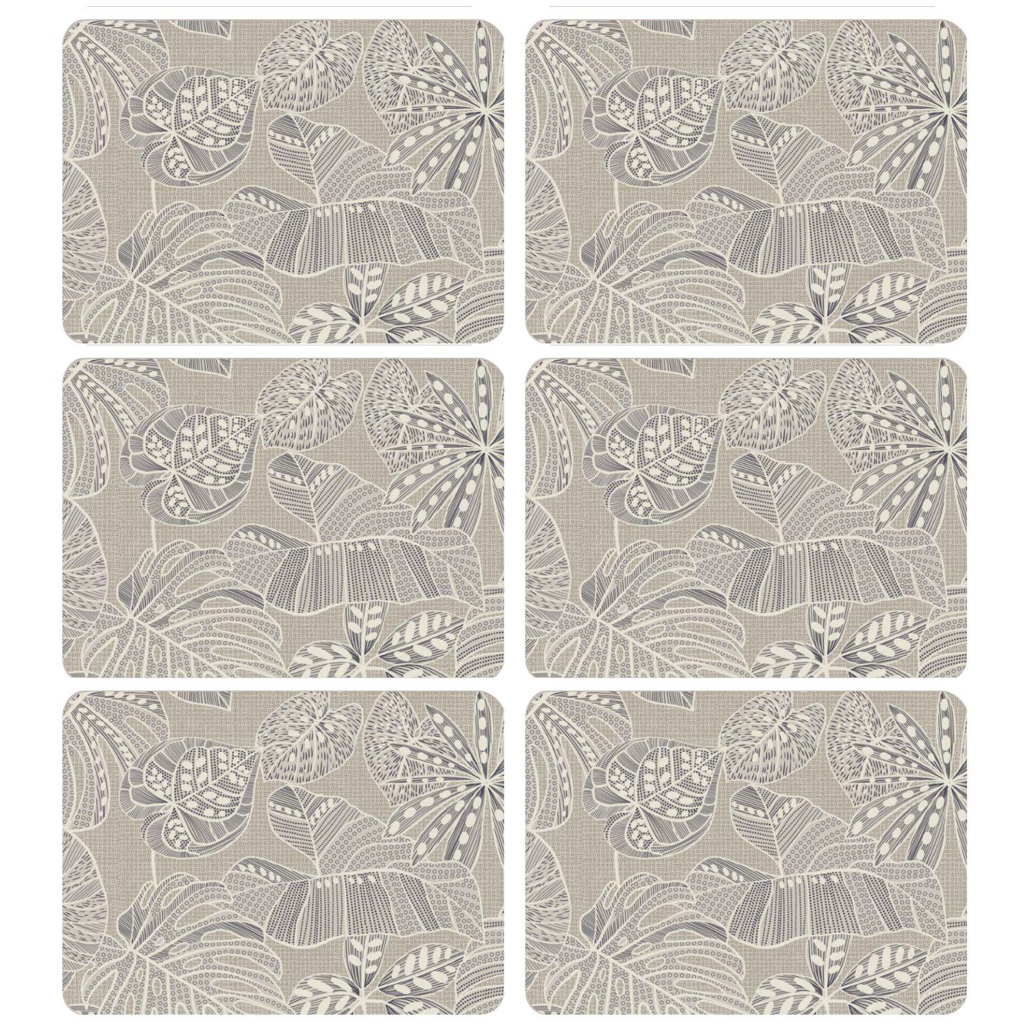Lot de 6 sets de table motifs tropical WILD - 28 x 43 cm - Ecru