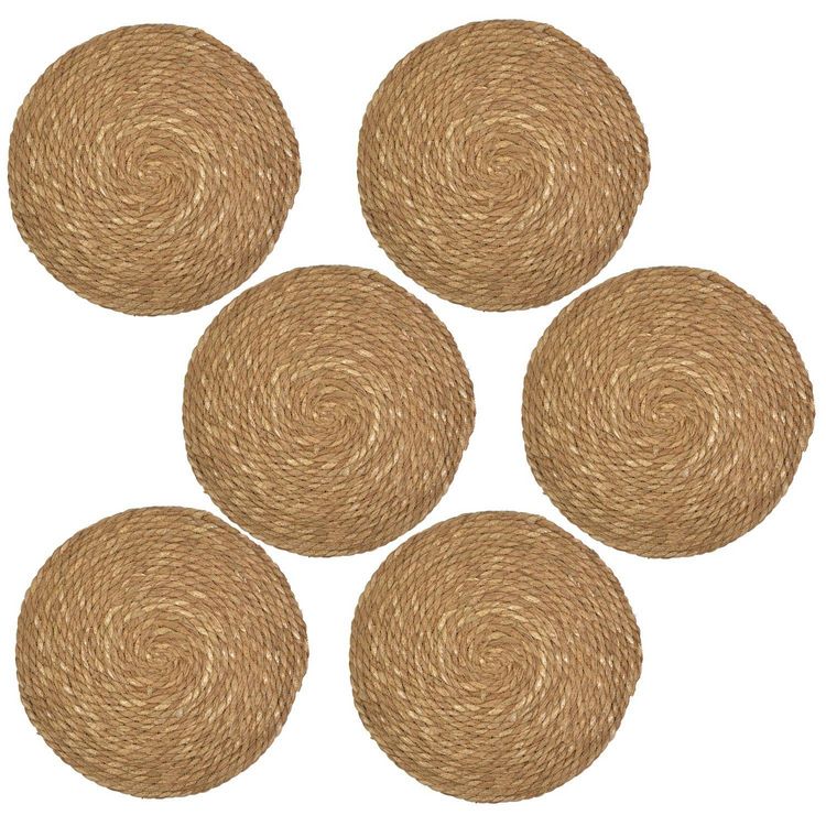 Lot de 6 sets de tables ronds en jute GRAMI - Diam. 38 cm - Marron