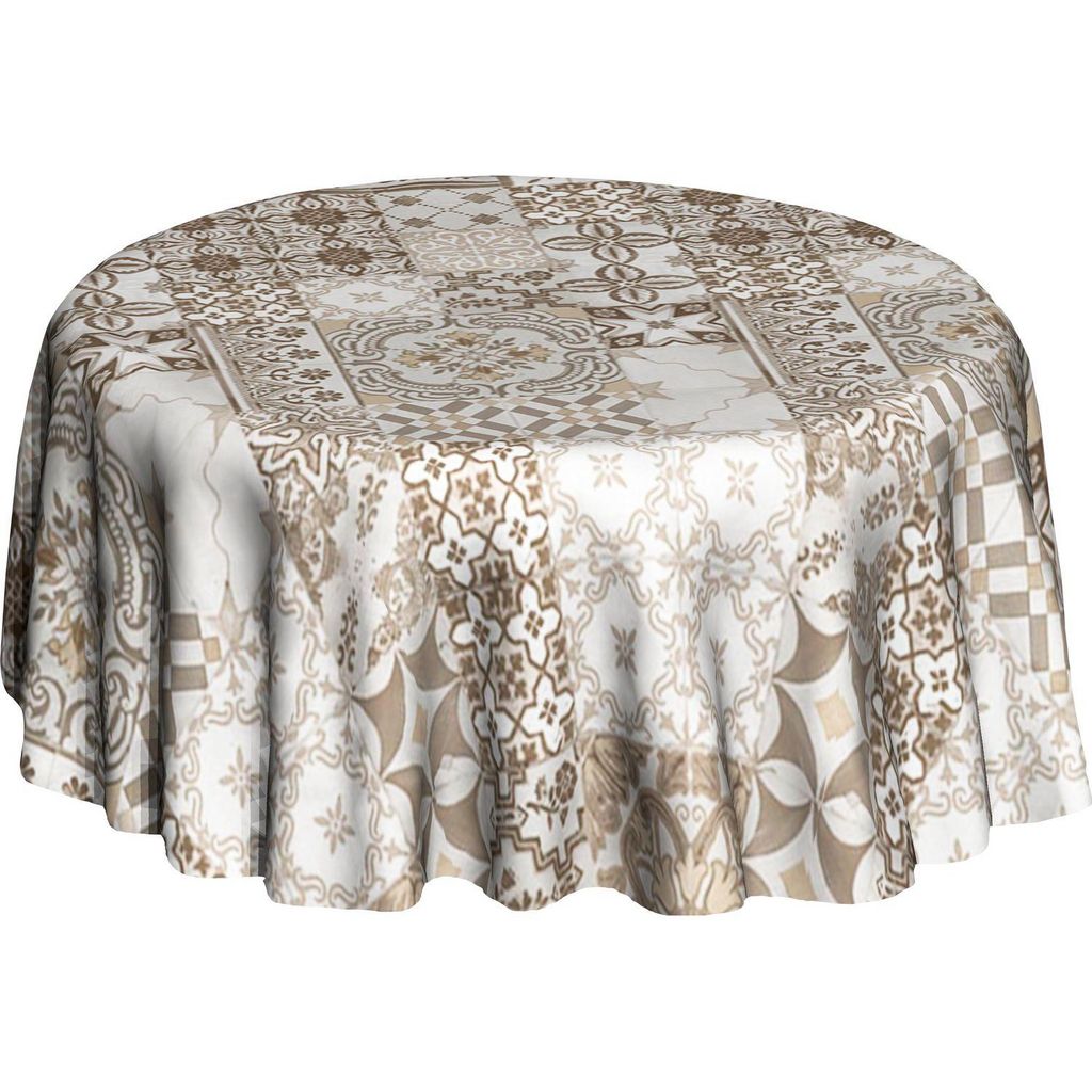 Nappe ronde en toile cirée carreaux Azulejos - Diam. 135 cm - Ecru