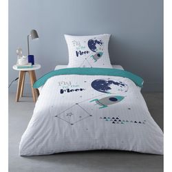 Parure de lit enfant design Captain Spacey - 100% Coton - 140 x 200 cm - Blanc