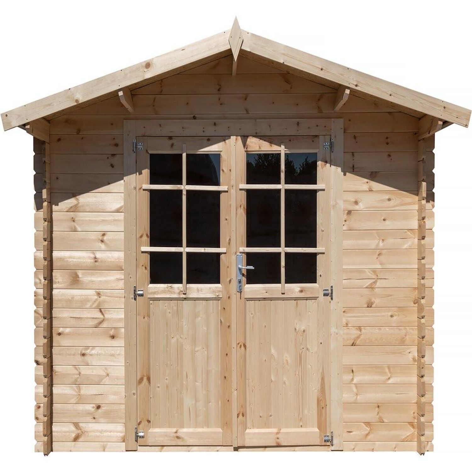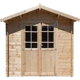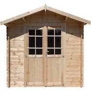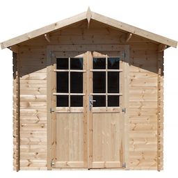Abri de jardin en bois 28 mm Lys - Porte simple avec fenêtre - Fabrication européenne - Dimensions: 298 x 298 x 235 cm.