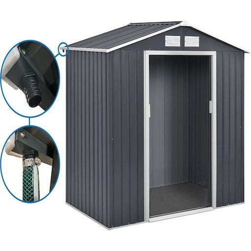 Abri de jardin Vegas - En acier galvanisé - Double porte coulissante - Résiste aux UV et à la rouille - Gris - gouttière pour abri de jardin en métal - gris - Anti UV - Antirouille - Convient pour Abri métal de 2 m2 à 6 m2.