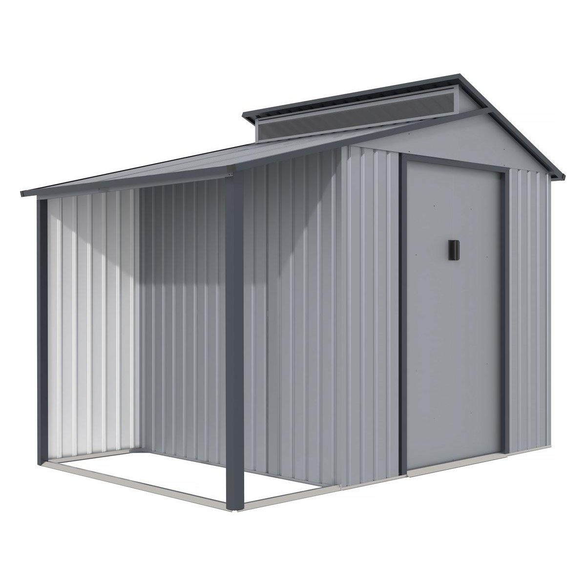 Abri de jardin métal avec pergola Madras - 5.64 m² - 193 x 292 x 229 cm - Gris