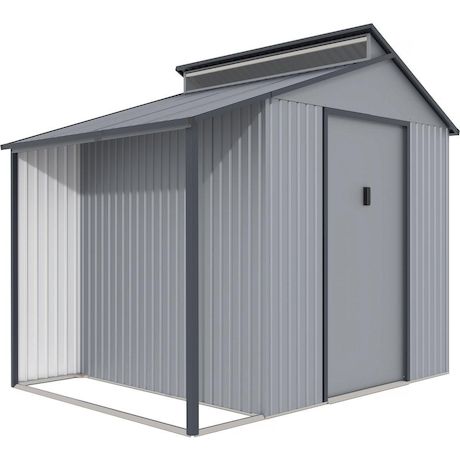 Abri de jardin métal avec pergola Madras - 9.12 m² - 257 x 355 x 237 cm - Gris
