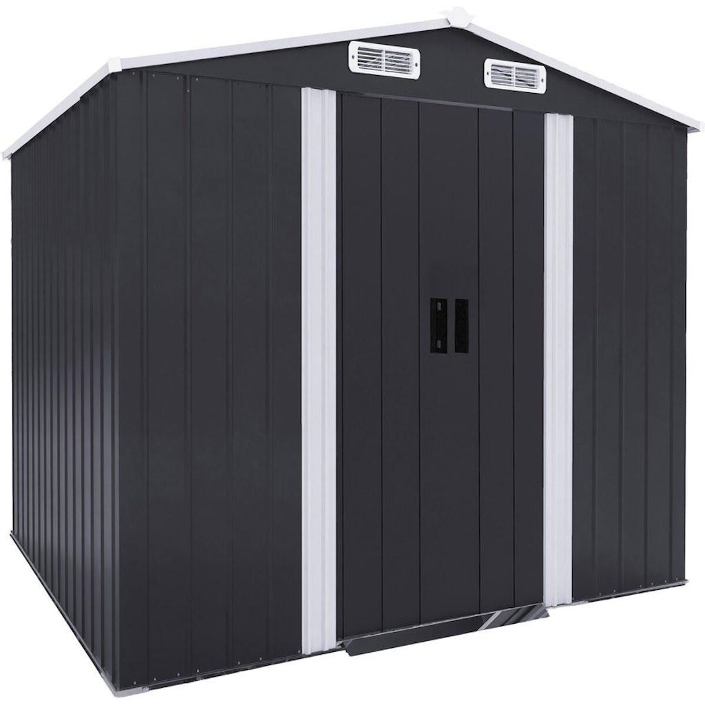 Abri de jardin métal Boston - 6,54 m² - Gris L'abri de jardin Boston est une solution idéale pour optimiser et organiser votre espace extérieur. Avec une surface de 6,54 m² et des dimensions généreuses de 276 x 237 x 193 cm, il s'intègre facilement même dans les petits jardins.Conçu en métal gris, il se distingue par sa solidité, sa résistance aux intempéries et sa durabilité sans entretien particulier. Sa porte coulissante permet un accès simple et fluide, tout en évitant l'encombrement à l'ouverture. Les 4 bouches d'aération intégrées assurent une bonne circulation de l'air, réduisant l'humidité et offrant de meilleures conditions de stockage.Cet abri est parfait pour ranger outils, produits d'entretien, accessoires de jardinage ou équipements saisonniers, à l'abri des éléments. Esthétique, fonctionnel et robuste, il offre un rangement sécurisé et pratique, tout en apportant une touche moderne à votre jardin. Un excellent choix pour protéger efficacement vos affaires au quotidien. Cabanon de jardin Boston - 6,54 m² - Dimensions : 276 x 237 x 193 cm - 4 bouches d'aération - Porte coulissante - Métal - Gris .Descriptif: Abri de jardin Boston - 6,54 m² - Dimensions : 276 x 237 x 193 cm - 4 bouches d'aération - Porte coulissante - Métal - Gris