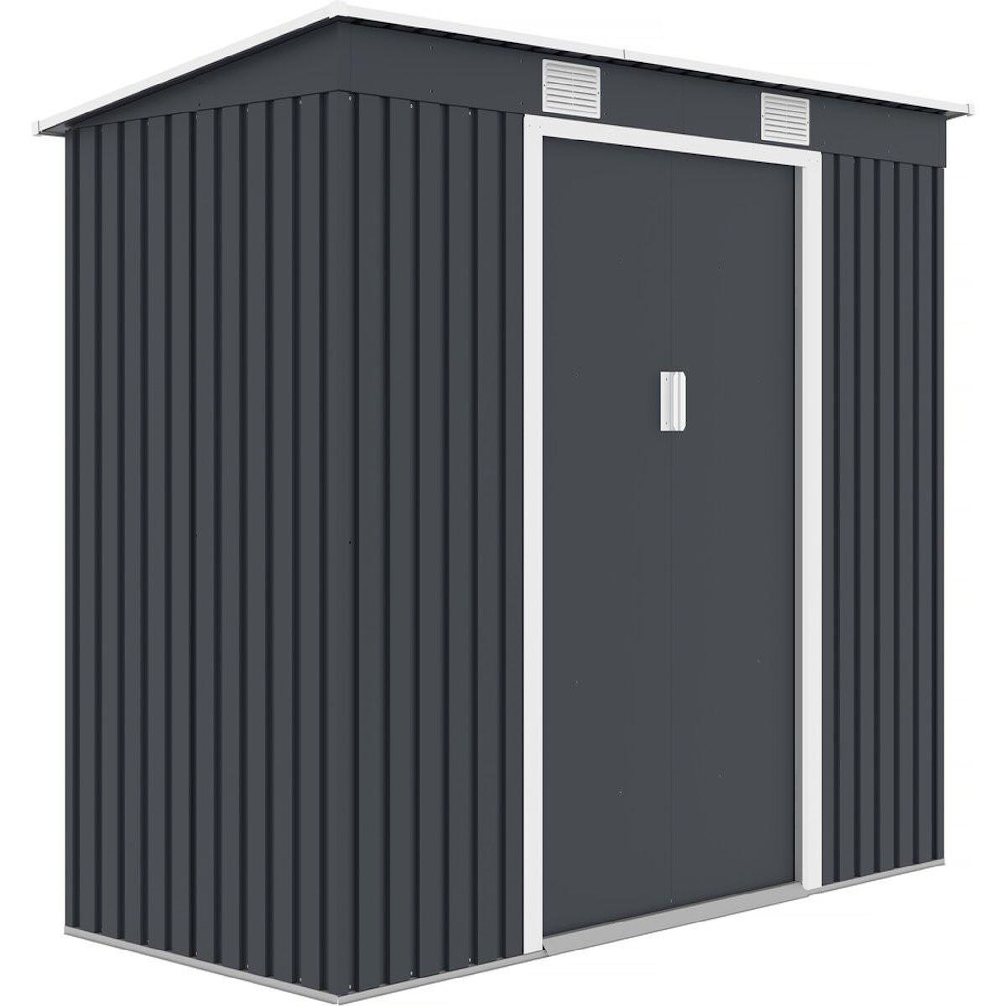 Abri de jardin en métal monopente Austin - 121 x 261 x 176 cm - Gris - Structure haute qualité composée de zinc et d'acier - 2 portes coulissantes.