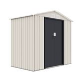 Abri de jardin métal  Nebraska  - 2.71 m² - Dimensions : 127 x 213 x 195 cm - Beige/gris anthracite - Structure : métal (zinc) - Dimensions extérieures : 117 x 203 x 195 cm - Dimensions intérieures : 113 x 199 x 195 cm - 2 portes coulissantes avec poignées (dimensions : 96 x 162 cm) - 4 évents - Kit d'ancrage sur béton inclus - 4 barres de renfort - Anti-UV - Anti-rouille.