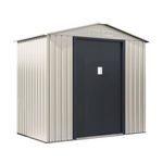 : Abri de jardin métal Nebraska - 4.07 m² - Dimensions : 191 x 213 x 195 cm - Beige/gris anthracite - Structure : métal (zinc) - Dimensions extérieures : 181 x 203 x 195 cm - Dimensions intérieures : 177 x 199 x 195 cm - 2 portes coulissantes avec poignées (dimensions : 96 x 162 cm) - 4 évents - Kit d'ancrage sur béton inclus - 4 barres de renfort - Anti-UV - Anti-rouille.