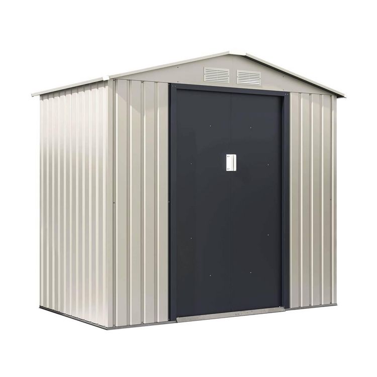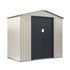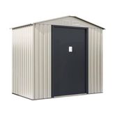 Abri de jardin métal Nebraska - 4.07 m² - Dimensions : 191 x 213 x 195 cm - Beige/gris anthracite - Structure : métal (zinc) - Dimensions extérieures : 181 x 203 x 195 cm - Dimensions intérieures : 177 x 199 x 195 cm - 2 portes coulissantes avec poignées (dimensions : 96 x 162 cm) - 4 évents - Kit