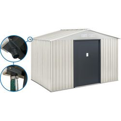 : Abri de jardin métal Nebraska 5,29m² - Avec gouttière - Dimensions hors tout: 191 x 277 x 202 cm.