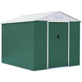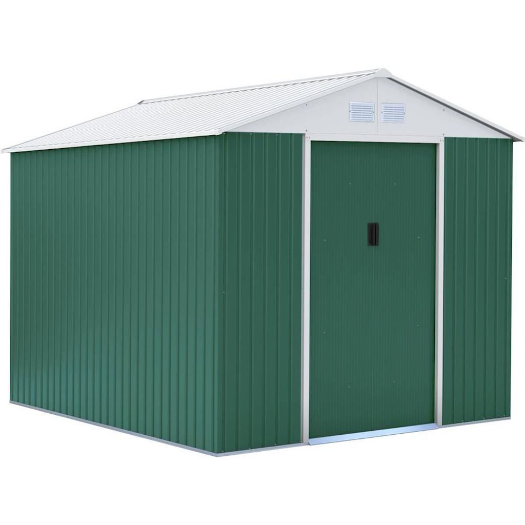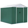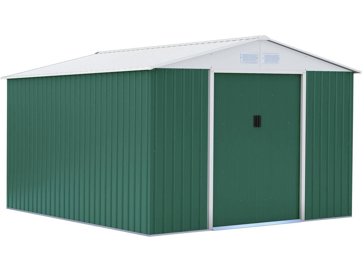 Abri de jardin métal couleur vert et blanc - Dimensions hors tout : 319 x 340 x 210 cm - Kit d'ancrage sur béton inclus.
