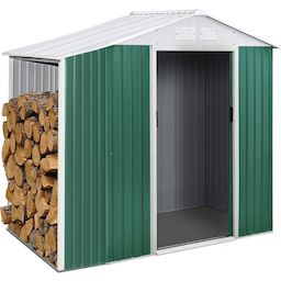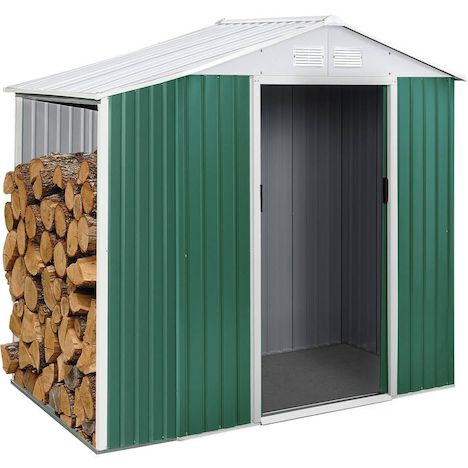 Abri de jardin métal Rosas 2,71 m² avec abri bûche - Vert