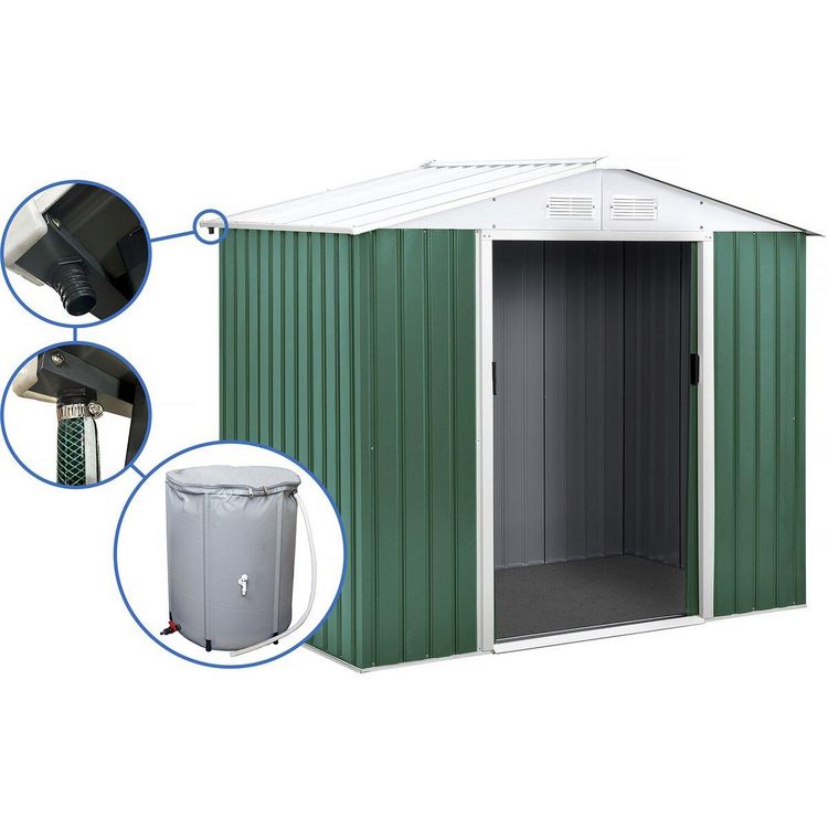 Abri de jardin métal - Rosas - 2.71 m² avec récupérateur d'eau - Vert
