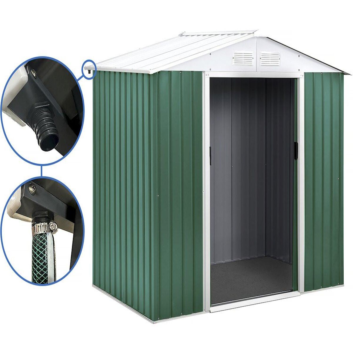 Abri de jardin métal - Rosas - 4,07 m² avec gouttière - Vert
