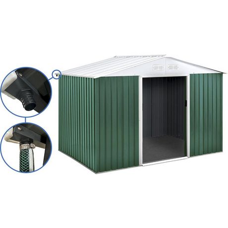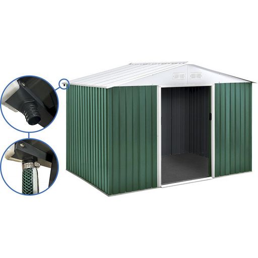 Abri de jardin métal - Rosas - 7,06 m² avec gouttière - Vert