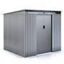 Abri de jardin en acier galvanisé - Dimensions hors tout : 241 x 261 x 186 cm - Traitement anti rouille et anti UV - Double porte coulissante - Rangement de jardin - Gris.