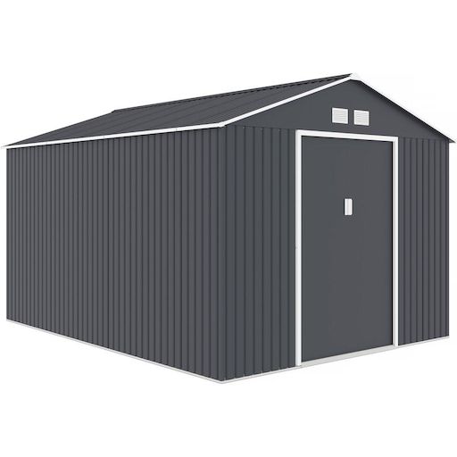 Abri de jardin Vegas - En acier galvanisé - Dimensions hors-tout : 446 x 340 x 210 cm - Grilles d'aération - Double porte coulissante - Résiste aux UV et à la rouille - Gris.L'abri de jardin parfaitPLUS D'ESPACEL'abri de jardin Vegas est la solution idéale pour tous vos besoins de stockage.Placé dan
