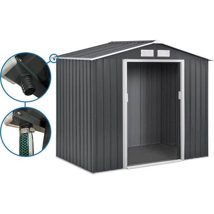 Abri de jardin Vegas - En acier galvanisé - Double porte coulissante - Résiste aux UV et à la rouille - Gris - gouttière pour abri de jardin en métal - gris - Anti UV - Antirouille - Convient pour Abri métal de 2 m2 à 6 m2.Abri de jardin en métal 2.7 m² avec gouttière - Vegas : Découvrez l'Abri