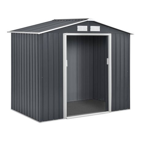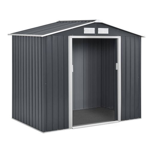 Abri de jardin Vegas - En acier galvanisé - Dimensions hors-tout : - Grilles d'aération - Double porte coulissante - Résiste aux UV et à la rouille - Base/fondation non inclus - Gris.