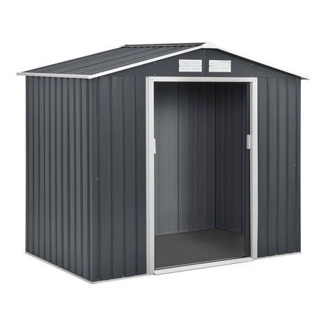 Abri de jardin Vegas - En acier galvanisé - Dimensions hors-tout : - Grilles d'aération - Double porte coulissante - Résiste aux UV et à la rouille - Base/fondation non inclus - Gris.L'abri de jardin parfait PLUS D'ESPACE L'abri de jardin Vegasest la solution idéale pour tous vos besoins de stockag