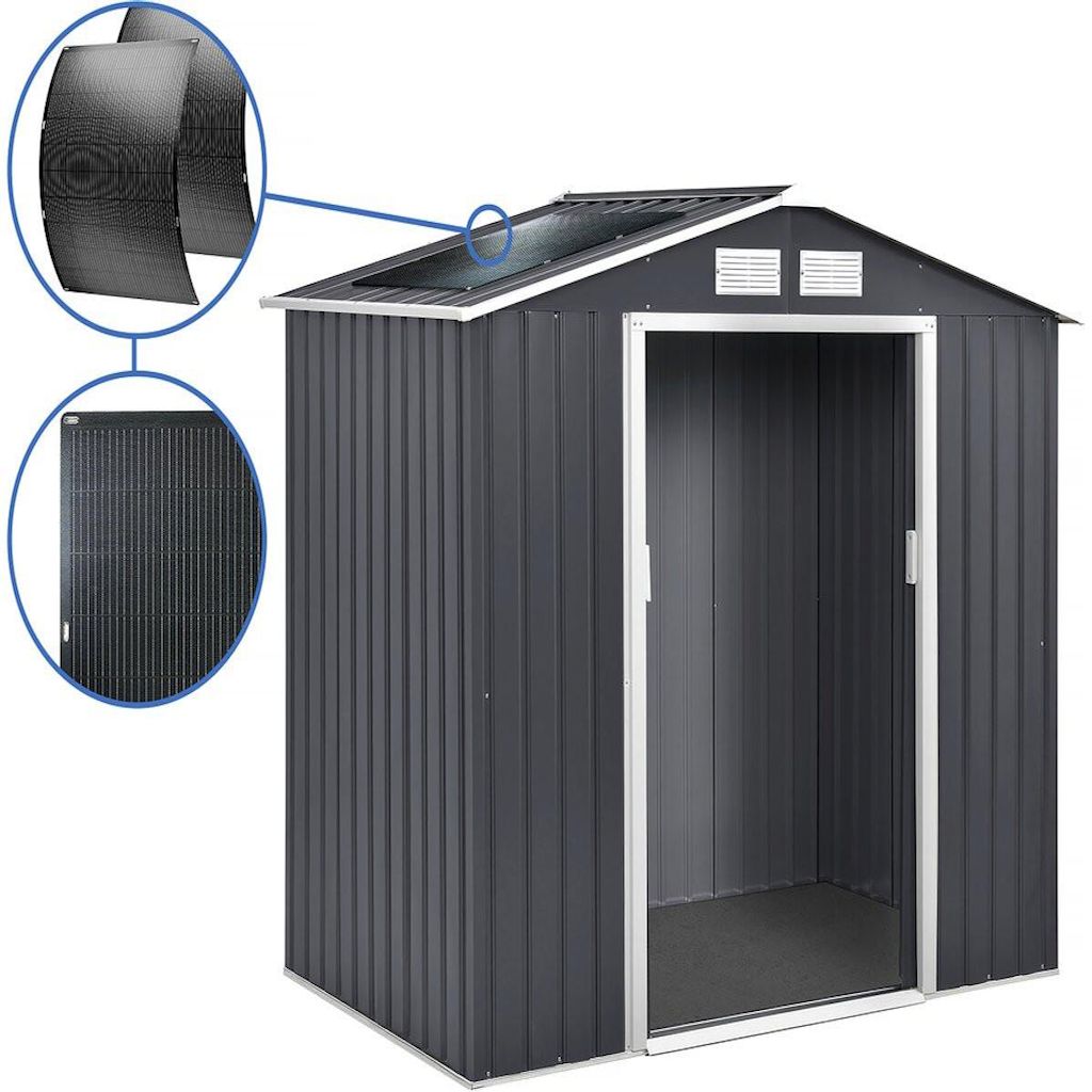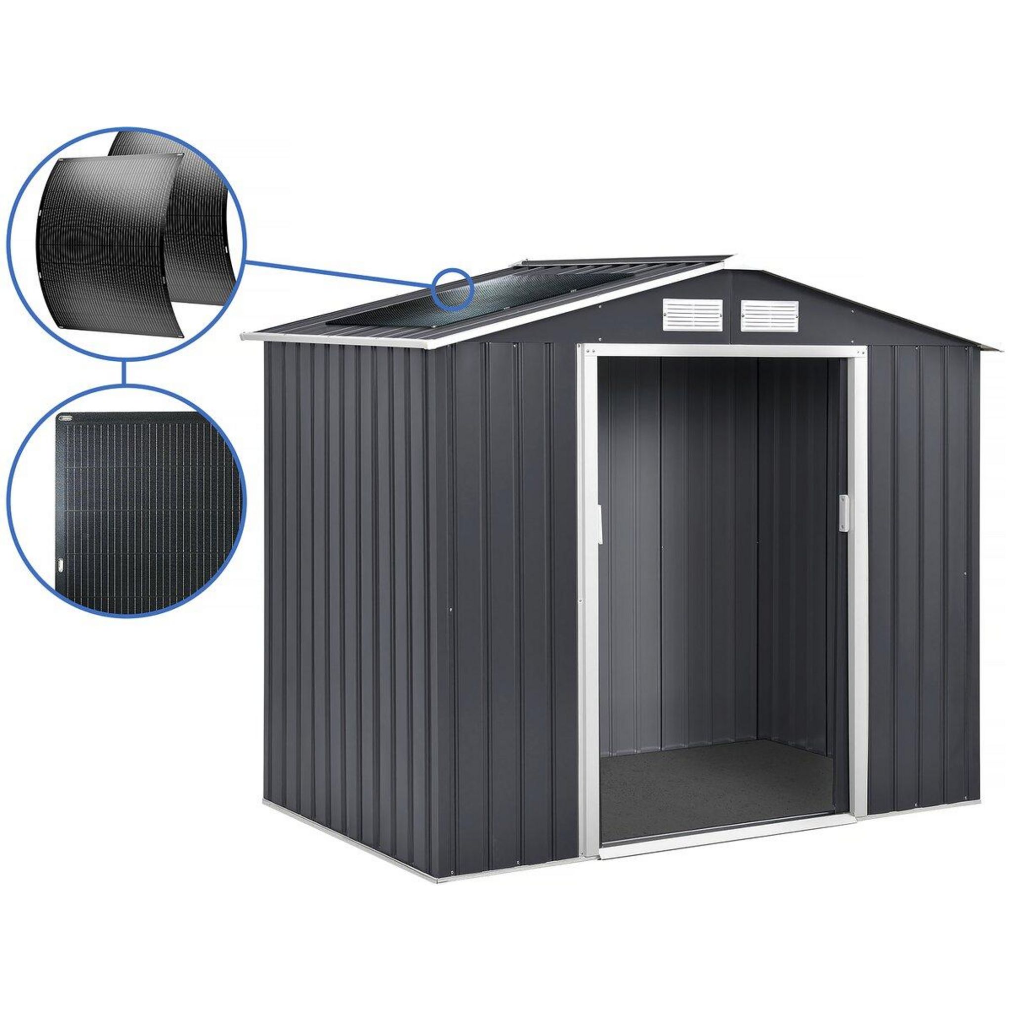 Abri de jardin métal - Surface 5.29 m² - Avec panneaux solaires - Lot de 2 - Onduleur wifi et prise courant inclus - Anti corrosion - Résistant - Pratique.