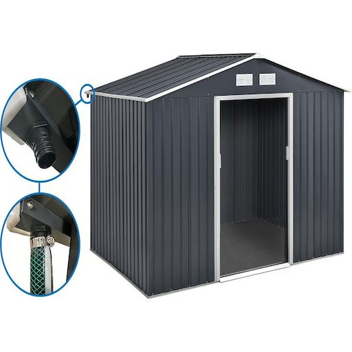 Abri de jardin métal - Vegas - 8,83 m² avec gouttière - Gris