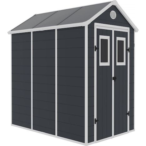 Abri de jardin résine Texas l'abri de jardin Texas est fait pour résister aux dégradations dues à l'environnement naturel dans lequel il est utilisé. Fait pour une utilisation extérieure , sa structure est entièrement protégée contre les rayons ultraviolet du soleil afin qu'elle conserve sa couleur d'origine le plus longtemps possible. Une fois monté, vous pourrez l'utiliser pour ranger vos outils de bricolage, votre tondeuse à gazon ou tout autre objet de jardinage.Bien plus, il vous permettra d'entreposer certains mobiliers de jardin sous une housse de protection. N'hésitez plus à garder vos affaires à l'abri, notamment en cas de pluie.L'abri de jardin vous offre un espace de rangement idéal et sûr depuis votre jardin. Abri de jardin résine Texas - 5.23 m² - 278 x 188 x 225 cm - Gris - Structure : résine (panneaux), acier (armature) - 2 portes (dimensions : 120 x 183 cm) - 2 évents - Ancrages intérieurs - 4 barres de renfort - 1 fondation .Descriptif: Abri de jardin résine Texas - 5.23 m²