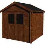 Abri jardin bois Valodeal - 8.88 m² - Dimensions extérieure au sol : 2.98 x 2.98 x 2.39 m - 34 mm - Traité marron - Structure : Sapin Blanc du Nord traité autoclave alte 3, marron - Porte double.