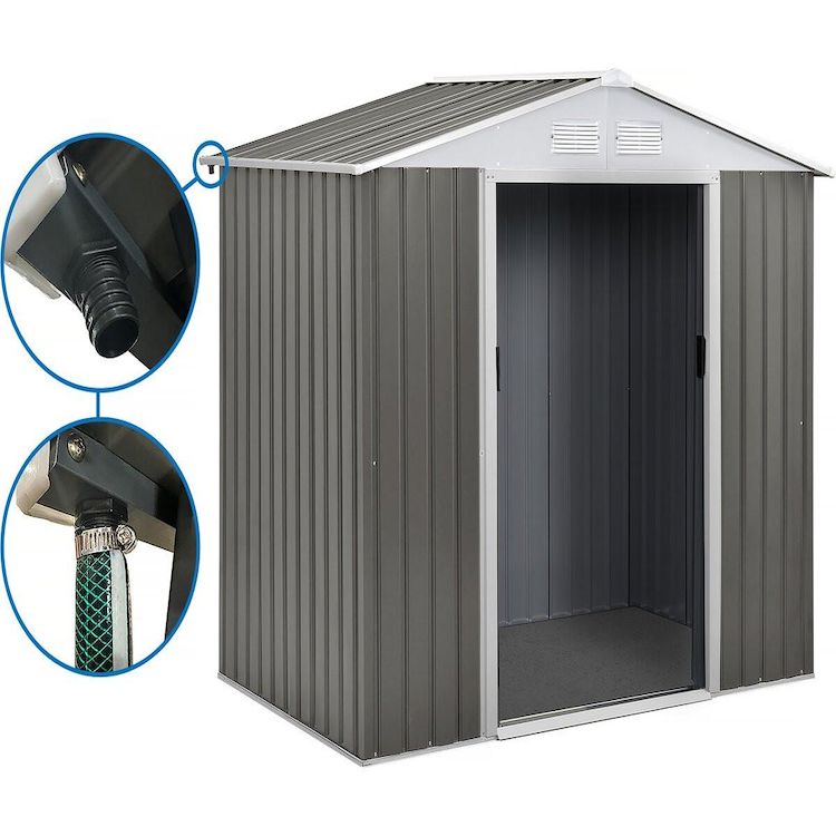 Abri jardin métal Dallas - 4.07 m² avec gouttière - Taupe