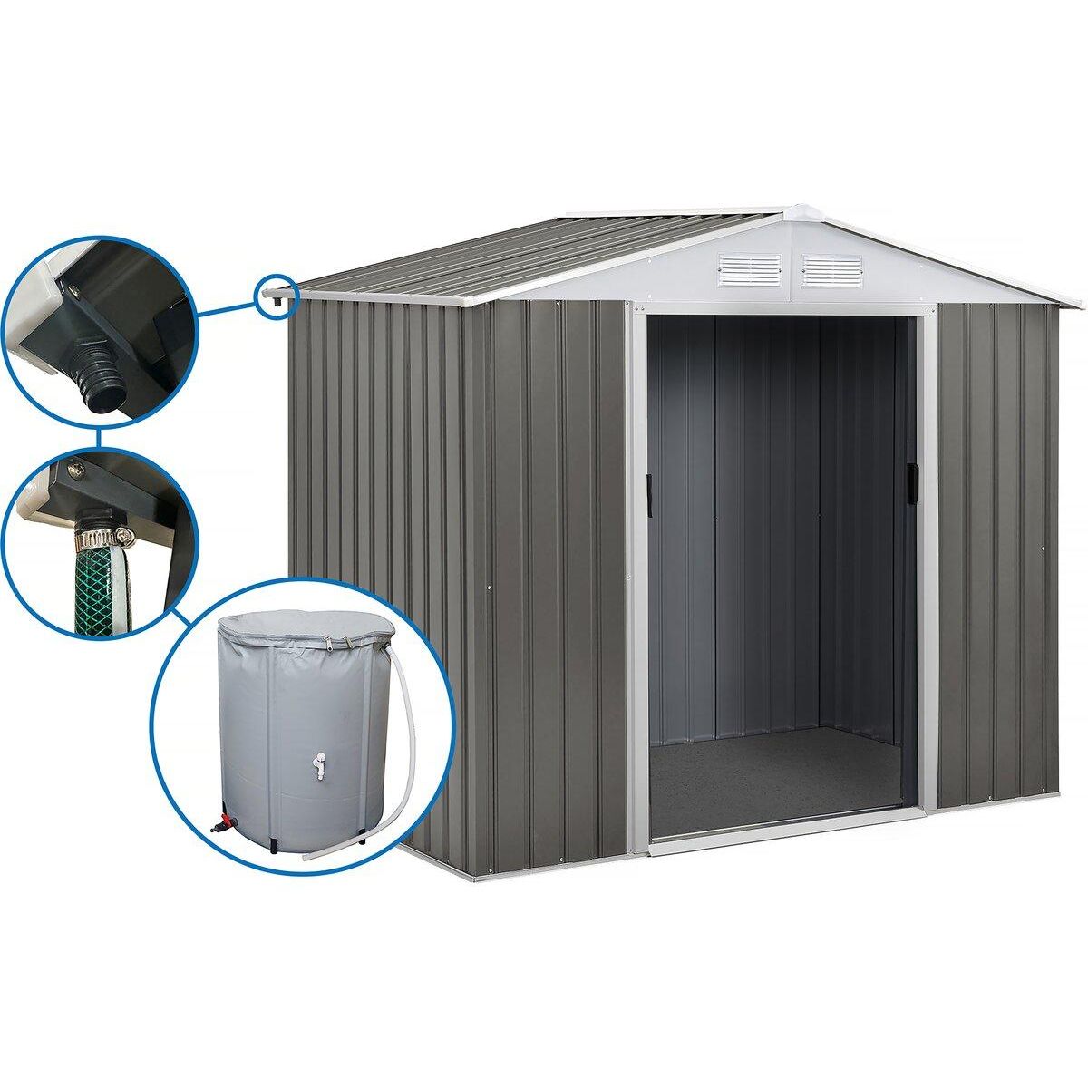 Abri jardin métal Dallas - 5,29 m² avec gouttière et récupérateur d'eau