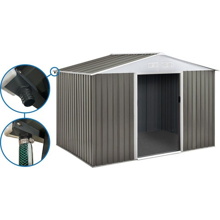 Abri jardin métal Dallas - 8.84m² avec gouttière - Taupe