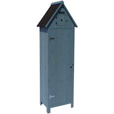 Armoire de jardin Cabanon Un rangement pratiqueUne armoire de jardin idéale pour ranger votre matériel de jardinage.Composée d'une porte simple derrière laquelle se trouve un grand espace de rangement, l'armoire de rangement de jardin Cabanon, est un abri de jardin bien pratique.Conçue pour résister à la pluie, cette armoire de jardin préserve au sec toutes vos affaires, tout au long de l'année.Ainsi, elle vous sera bien utile pour ranger rateaux, pelles, balais etc...De plus et pour optimiser l'espace, l'armoire Cabanon vous propose également 3 petites étagères qui se révéleront parfaites pour entreposer des bacs de rangements et des petits outils.Une armoire pleine de charmeCette armoire de rangement fabriqué en bois de sapin est dotée d'un design original.Sa toiture à deux pans lui donne un véritable petit charme, qui la distingue des armoires altiques à la toiture à plat.Avec son style bien à elle, cette armoire de jardin emprunte les codes du petit cabanon ou de la petite maisonnette et apporte une touche d'originalité dans votre jardin.Enfin, sous sa toiture se trouve un agréable et pratique petit espace de rangement, verrouillable à l'aide d'un loquet, dans lequel vous pourrez déposer quelques petits objets.L'armoire de jardin Cabanon est autant un mobilier fonctionnel et pratique qu'un meuble de décoration ! Armoire de jardin Cabanon - Dimensions internes : 63 x 42 x 124.5 cm - 77 x 54.5 x 179 cm - En bois de sapin naturel - Résistant à la pluie - Bleu ciel .Descriptif: - Armoire de jardin type cabanon/maisonnette