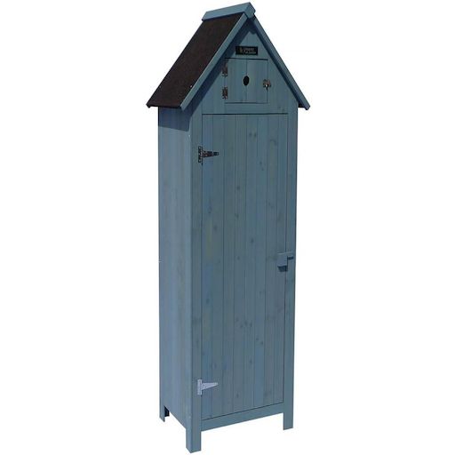 Armoire de jardin Cabanon - Dimensions internes : 63 x 42 x 124.5 cm - 77 x 54.5 x 179 cm - En bois de sapin naturel - Résistant à la pluie - Bleu ciel.