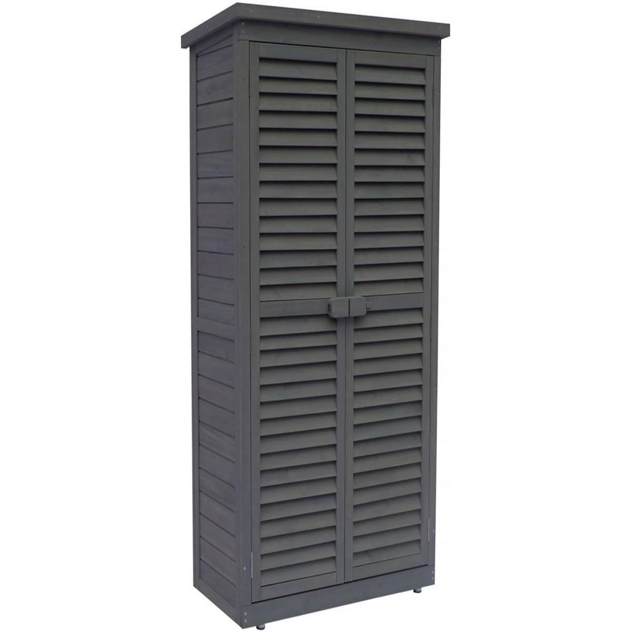 Armoire de jardin Space Des rangements dans le jardinVous ne savez plus où ranger vos affaires ? L'armoire de jardin Space vous propose une réelle possibilité de stockage.Depuis votre jardin, cette armoire met à votre disposition deux larges étagères ainsi qu'un espace de rangement en bas pour ranger toutes vos affaires.Pratique, cette armoire vous laisse même la possibilité d'insérer des bacs de rangement sur les étagères et ainsi trier vos outils de bricolage.Fini les outils de jardinage, les housses de mobilier ou encore les jouets des enfants qui traînent partout, l'armoire de jardin en bois Space est ce qu'il vous faut.Une armoire pratique Cette armoire de jardin dispose également d'une ouverture double porte munie de poignées afin de faciliter son ouverture et sa fermeture.De plus, ses portes type persiennes disposent d'une aération qui permet la circulation et le renouvellement de l'air dans l'ensemble du meuble.L'armoire est également pourvue d'un verrou : glissez le loquer en bois à travers les deux poignées pour la verrouiller. Armoire de jardin Space - En bois de sapin naturel - 87 x 46.5 x 160 cm - Résistant à l'eau - Anthracite .Descriptif: - Un meuble de rangement pour jardin, terrasse et balcon - Construit en bois de sapin - 2 larges étagères - Grand espace de rangement - Double porte type persienne - Ventilation - Verrouillable