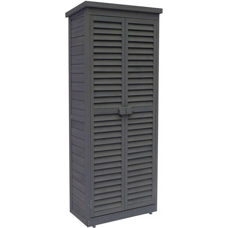 Armoire de jardin Space - En bois de sapin naturel - 87 x 46.5 x 160 cm - Résistant à l'eau - Anthracite.Armoire de jardin Space Des rangements dans le jardinVous ne savez plus où ranger vos affaires ? L'armoire de jardin Space vous propose une réelle possibilité de stockage.Depuis votre jardin,
