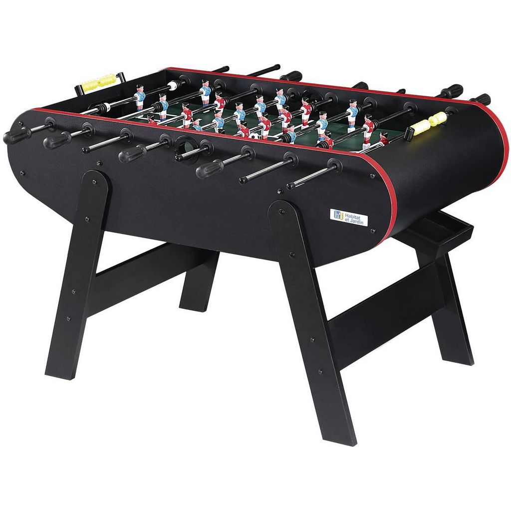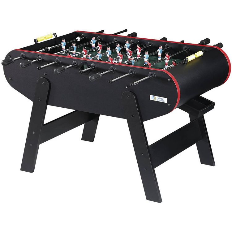 Optez dès maintenant pour un baby foot Habitat et Jardin ! Grâce à ce baby-foot vous allez faire plaisir aux petits comme aux grands. Il apportera une atmosphère festive similaire à celle des salles de jeux. Pensé pour un usage familial, ce baby foot haut de gamme vous promet un plaisir de jeu sans faille. Sa structure en bois massif et multiplis hêtre (L 140 x l 74 x H 86 cm), son tapis de jeu vert foncé et ses joueurs en aluminium montés sur des barres télescopiques en acier inoxydable en font un atout incomparable pour votre salle de jeux. Les passionnés apprécieront les détails apportés au baby foot comme finitions haut de gamme, ses vis haute résistance ainsi que son look vintage. Découvrez dès maintenant la jouabilité exceptionnelle de nos baby-foot ! Que vous soyez en famille ou entre amis , à 2 ou à 4 c'est le moment de vous lancer dans des matchs de foot de folie. Donnez à vos soirées une ambiance digne des plus grands stades ! De plus, avec son aspect vintage, ce baby-foot apportera une touche supplémentaire à votre décoration intérieure.