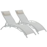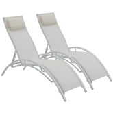 Duo 2 bains de soleil Phoenix - Structure aluminium et support tube acier - Siège en textilène - Couleur ecru.
