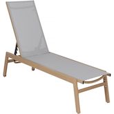 Bain de soleil en aluminium avec structure imitation bois l Elysia - Gris clair - Dimensions: 163 x 55 x 53/91 cm - Dossier inclinable: 5 positions.