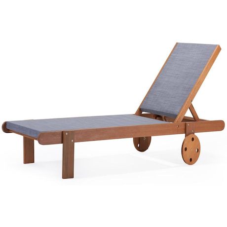 Bain de soleil en bois exotique et textilène - Structure en bois Shorea - 193,5 x P 71 x H 80 cm - Gris.