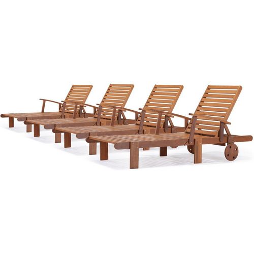 Bain de soleil pliant en bois exotique Tokyo - Maple - Marron clair - Lot de 4