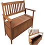 En savoir +Banc de jardin en bois de Shorea - 2 places - 120 x 61 x 92 cm - Coffre de rangement - 2 grands accoudoirs - Marron.