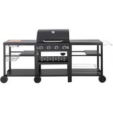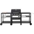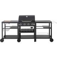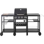 Cuisine d'extérieur barbecue à gaz avec 2 tables et étagères - 12 kw - 4 bruleurs - 8 roulettes.