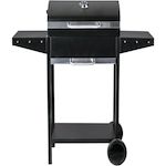 Barbecue charbon de bois Bizon en acier noir - Grille chromée incluse - 119 x 50 x 101 cm - Munis de poignées et de deux roulettes..