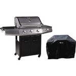 Barbecue Gaz 4 brûleurs dont 1 latéral - Eclairage LED sur les 3 boutons de contrôle - Acier - Surface de cuisson : 67 x 44 cm - Jauge de température intégrée - Espace de rangement - Housse protection inclus - Gaz butane - Détendeur et tuyau non inclus.