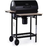Un grand espace de cuissonLe barbecue bois King vous propose un large espace de cuisson où réaliser vos grillades. Doté d'une grille de cuisson en acier, vous pourrez amplement la place d'y faire cuire tous vos mets préférés.Par ailleurs, une petite grille se situe à un niveau supérieur. Elle sera parfaite pour entreposer vos viandes déjà cuites et les laisser reposer quelques minutes. Un récupérateur de cendre amovibleAfin de faciliter l'entretien quotidien de votre barbecue charbon de bois, celui-ci est équipé d'un récupérateur de cendre. Pratique, il récupère les cendres de fin de cuisson et vous permet de vous en débarrasser plus facilement. N'hésitez pas à utiliser la poignée pour mieux le transporter ! Des clapets de ventilationContrôlez mieux la cuisson de vos aliments avec les clapets de ventilation. Vous pourrez ainsi évacuer la fumée dégagée en cours de cuisson au fur et à mesure en toute sécurité. Des tablettes de supportPour plus de confort, le barbecue bois dispose de deux tablettes : une sur le côté et une autre à l'avant. Celles-ci vous permettront de poser un plat de viandes prêtes avant de les servir à table ou encore de déposer vos ustensiles de cuisson au barbecue.Pour vos condiments ou pour vos saladiers en extra, vous apprécierez la grille de rangement située sous le barbecue. Comment allumer son barbecue charbon de bois ?Vous n'avez jamais allumé un barbecue au charbon de bois ? Pas de soucis, il n'y a rien de plus simple ! Tout d'abord, assurez-vous que votre couvercle est soulevé et les clapets de ventilation ouverts. Placez votre charbon sous forme pyramidale et ajoutez-y 3 ou 4 allume-feux que vous allumerez ensuite.Laissez le couvercle soulevé et le feu devrait être prêt au bout de 30 minutes, il vous suffira seulement d'éparpiller les charbons sur toute la surface de la cuve à l'aide d'une pince. Barbecue charbon de bois - 95 x 63 x 105 cm - Structure en acier - Surface de cuisson : 79 x 39 cm - Tablettes latérales - Récupérateur de cendre amovible - Noir .Descriptif: - Barbecue charbon de bois - Avec couvercle - Structure en acier - Tablettes latérales : 15 cm - Récupérateur de cendre amovible - Étagère de support - 2 roues : dia.: 15 cm - Épaisseur : 3.5 cm - 2 poignées : 26 x 2.2 x 11 cm