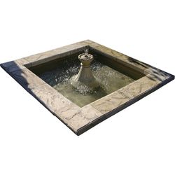Bassin carré Eden - 170 x 170 cm - 8 margelles droites (une margelle droite : 50 x 25 x 6 cm) - 4 margelles d'angle - 1 cœur central en pierre reconstituée. 1 pompe à débit réglable de 600 à 1150 litres/heure - câble électrique de 10 mètres.Bassin carré Eden Nous vous proposons ce magnifique ba