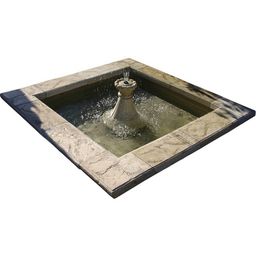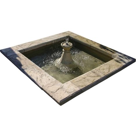 Bassin carré Eden - 170 x 170 cm - 8 margelles droites (une margelle droite : 50 x 25 x 6 cm) - 4 margelles d'angle - 1 cœur central en pierre reconstituée. 1 pompe à débit réglable de 600 à 1150 litres/heure - câble électrique de 10 mètres.