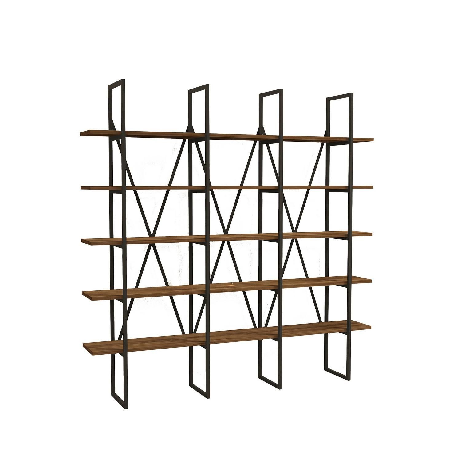 Bibliothèque en bois Beylerbeyi - 160 x 26 x 160 cm - NoyerNoir