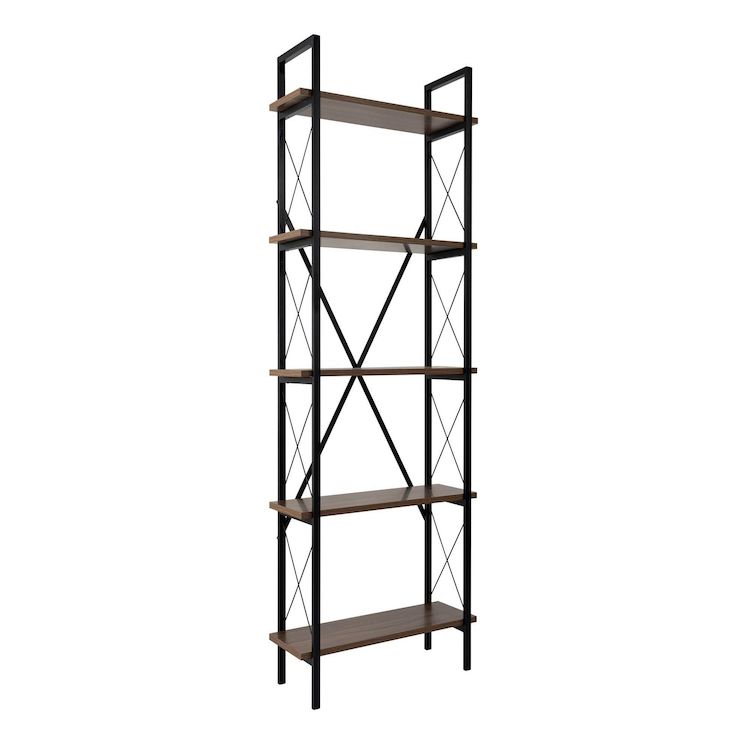 Bibliothèque en bois Elysian - 90 x 33 x 180 cm - NoyerNoir – 5.0 étagères Conçu pour offrir praticité et robustesse, ce modèle s'intègre facilement dans tout intérieur et répond aux besoins du quotidien en garantissant confort d'usage..