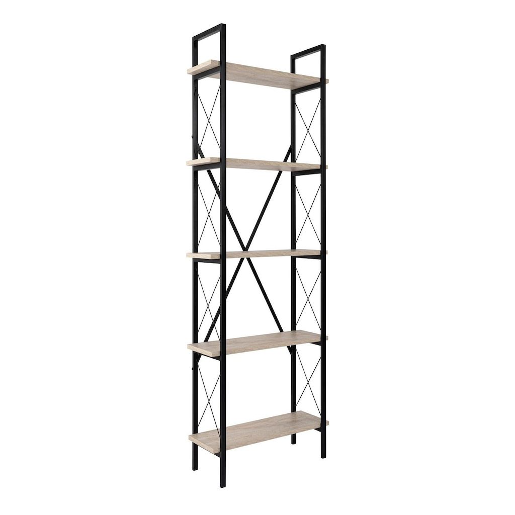 Bibliothèque en bois Elysian - 90 x 33 x 180 cm - TravertinNoir – 5.0 étagères Conçu pour offrir praticité et robustesse, ce modèle s'intègre facilement dans tout intérieur et répond aux besoins du quotidien en garantissant confort d'usage..